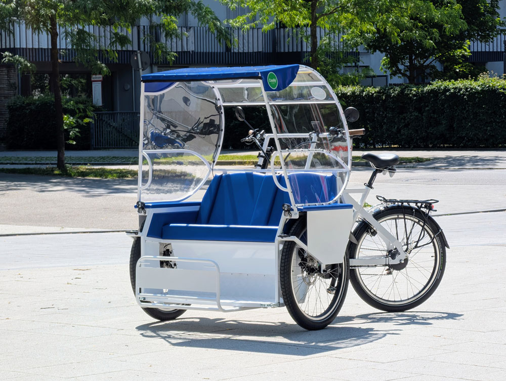 »Als Heimleitung einer karitativen Einrichtung war ich auf der Suche nach einer E-Rikscha für unsere Bewohner. Bei meiner Recherche bin ich auf Coolly in München gestoßen. Aufgrund der positiven Bewertungen haben wir das Coolly direkt online bestellt. Abwicklung des Coolly-Teams war erstklassig. Immer schnell, klar und zuverlässig. Finanziert wurde das Coolly von unserem Träger: Zuerst wurde ein Angebot erstellt und dann kam es zur Bestellung. Ich habe das Coolly mit individueller Farbkonfiguration und Branding bestellt. Die Lieferzeit war zügig. Es kam auf einer Palette an, sorgfältig verpackt. Seitdem erfreut es unsere Heimbewohner und inzwischen auch Gäste von außerhalb. Ich kann Coolly ohne Einschränkung weiterempfehlen! Weitere Heime unseres Trägers haben aufgrund unserer Empfehlung bestellt. Toll ist auch das neue Blinkersystem, das mehr Komfort bietet. Abbiegen mit Handzeichen ist bei der Lenkung des Coollys sonst eine Herausforderung.«