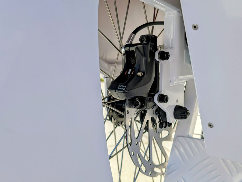 Über die stufenlose Nabenschaltung EXTREME (neu seit 12/22) von ENVIOLO wird mit einem Drehgriff vollständig geräuschlos und fließend geschaltet. Das hydraulische Scheibenbremssystem (neu seit 2026) mit 180mm Scheiben sorgt für eine kraftvolle Bremswirkung bei gleichzeitig sanftem Bremsweg. Vorne als TWIN-System (beide Laufräder mit Scheibenbremse) und am hinteren Laufrad als SINGLE-System. Beide Systeme mit praktischer Parkfunktion, die über den Bremsgriff aktiviert werden kann. Die zweifache Parkfunktion ermöglicht auch in abschüssigerer Position einen sicheren Halt und wird bei Aktivierung über das Cockpit-Display mit einem Symbol für Handbremse angezeigt. Die Kopplung beider Bremsen, vorne und hinten, mit der Motorelektronik und Schaltung ermöglicht ein effizientes Zusammenspiel aller Komponenten.